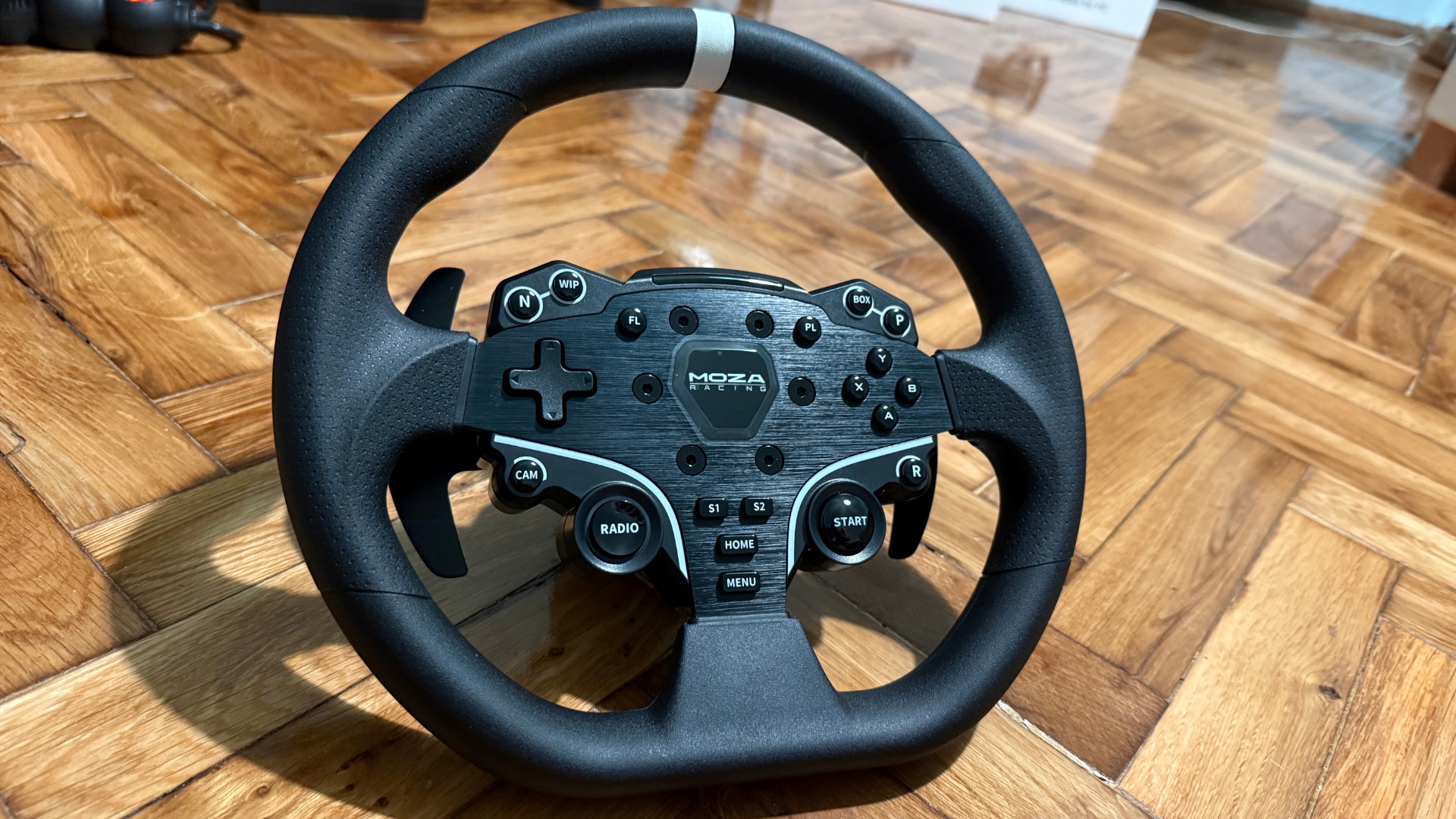 A kormányt sem érheti panasz. Rengeteg gombot találunk a kormányon, melyet a játékokban teljesen személyre szabhatunk. Ezen kívül pedig egy LED-es RPM visszajelző is segíti a dolgunkat, illetve tovább emeli a vizuális összképet. Szintén nem meglepő, hogy a szokásos pillangóváltók sem maradhatnak ki a repertoárból. Ezek használata is igencsak pozitív élmény, a Moza különösen ügyelt arra is, hogy a visszajelzésük is a drágább szettek elemeit idézze, még ha a működési mechanizmusuk nem is teljesen egyezik a burkolat alatt. Egy kör alakú kormányról beszélhetünk, mely kiindulási alapnak tökéletes lehet, hiszen gyakorlatilag bármilyen járművet elvezethet ezzel a játékos.