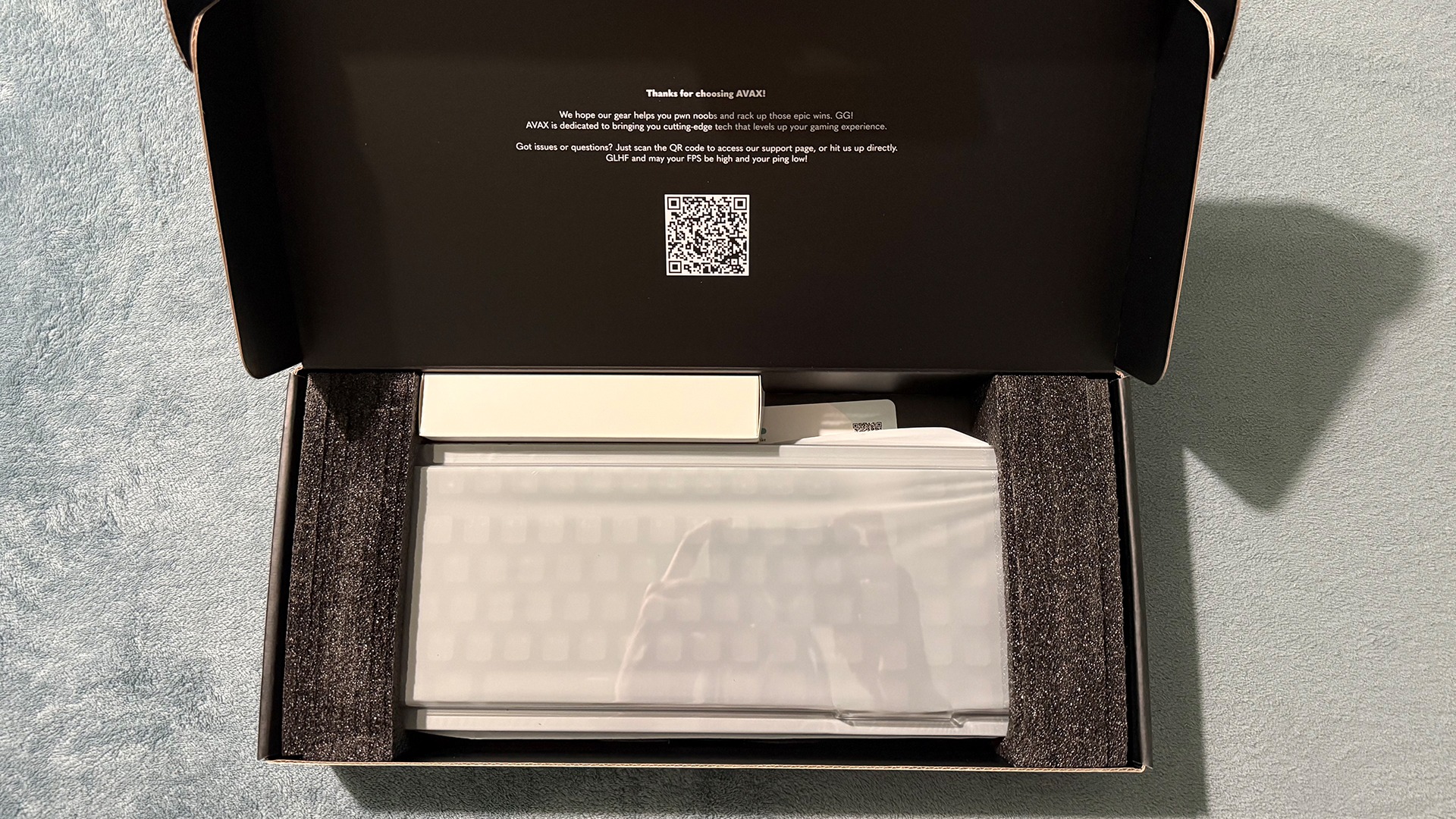 - Lehetne kicsit több ajándék a dobozban (pl. extra kapcsolók, 1-2 extra „AVAX”-os keycap), ám ez csak szőrszálhasogatás
