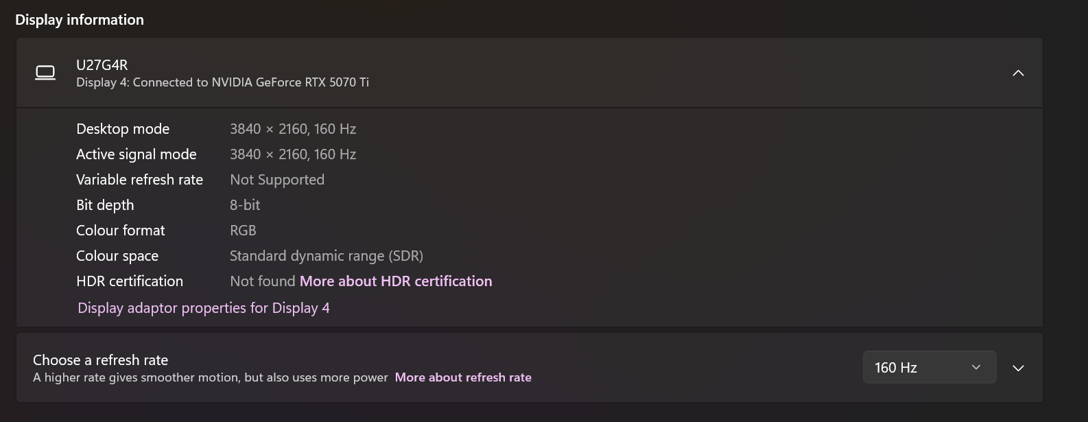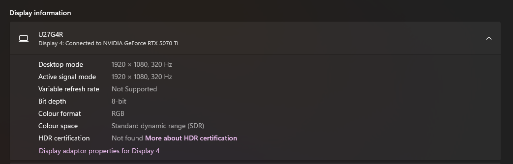 Korábban csak egy megoldás létezett a monitor és a képkockák szinkronizációjához, ha elszerettük volna kerülni a nem kívánt képtörést. Ez pedig nem volt más, mint a szoftveres V-Sync, mely a játék képkockaszámát szerette volna hozzáigazítani a monitor képfrissítéséhez. Igen ám, de ha a megfelelő FPS szám nincs meg, akkor ez elképesztő bemeneti késéssel, azaz input laggal jár, mely nem túl kellemes jelenség játék közben, még AAA címek esetében sem, nemhogy kompetitív játékok közben. Nem véletlen, hogy sokan ódzkodtak a bekapcsolásától. Ilyenkor jön képbe a monitor által támogatott funkció, az Adaptive Sync. Ekkor a monitor a saját képfrissítését a játékban elérhető FPS számhoz igazítja. Így nem csak a képtörés jelensége szűnik meg, de a 320 Hz-nél alacsonyabb FPS szám sem okoz problémát, hiszen a monitor lemerészkedik például 90 Hz-re is, ha a helyzet épp azt kívánja meg. Ez még jobban jöhet ilyen nagy képfrissítéssel operáló monitorok esetében, mint az AOC U27G4R. Ezt ismételten a Half-Life 2 RTX alatt teszteltük, ahol még az RTX 5070 Ti is nehezen tartotta a lépést.