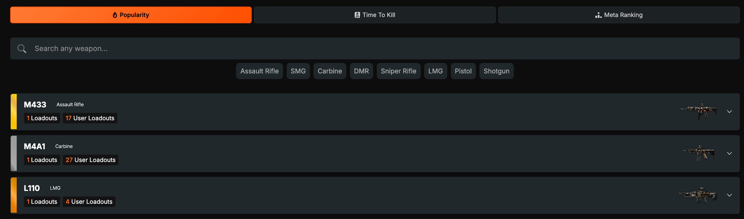 A hétvégi adatok alapján az M433, M4A1 és L110 triója a három legjobb és legnépszerűbb választás. Az SMG rajongók pedig az SGX mellett teszik le a voksukat. Ahogy sejteni lehetett, ezúttal sem maradunk ajánlott kiegészítők, azaz loadoutok nélkül.