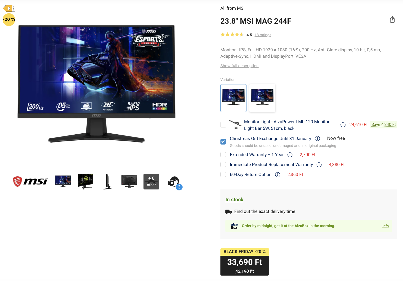Ezen az árszinten csak a FullHD felbontás jöhet szóba, ám nincs is ezzel semmi gond. Az átlagos, 23-25 hüvelyk közötti képátlóhoz ez még éppen elegendő, ahogy bizony jóval könnyebb kihajtani ezeket egy olcsóbb, gyengébb videokártyával is. A TN panel szinte már teljesen eltűnt ebből a kategóriából, így a színhűségre és a kontrasztra sem lehet panasz ezen az árszinten. 2025 novemberének közepére pedig már 35 ezer forint alatt is vadászhatunk magunknak ilyen monitort.