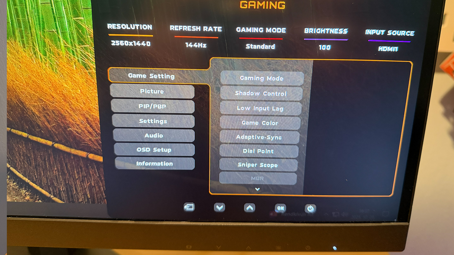 Az AOC két menüvel dolgozik manapság, az AOC GAMING Q27G4SRU az általam jobban preferált, letisztultabb designnal rendelkezik. Minden kötelező funkciót megtalálunk a menüben, legyen szó a beállításokról vagy éppen a játékokkal kapcsolatos tulajdonságok feljavításával. A menü felső részén pedig pillanatok alatt gyors visszajelzést kapunk az éppen aktív bemenetről vagy éppen a képfrissítésről és a felbontásról. Ezúttal dedikált, különálló gombokra érdemes készülni, nem pedig joystickes megoldásra.