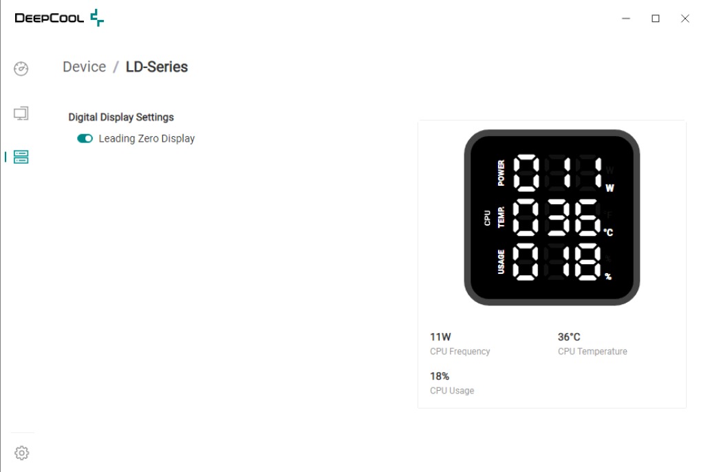 A blokkrészre egy többsoros, digitális LCD kijelző került. Ennek segítségével leolvashatjuk a gépházba pillantva az éppen aktuális fogyasztást, a hőmérsékletet vagy éppen a CPU kihasználtságot. Ennek meghajtásához két dologra van szükségünk. Az egyik egy szabad USB 2.0 header az alaplapon, hiszen azon keresztül kapja az információkat az eszköz. A másik pedig a DeepCool szoftvere, mellyel már a gépház esetében is találkozhattunk. A program indítását követően beállíthatjuk, hogy milyen adatokat is mutasson, ez sem volt több pár percnél. A gép indulásával egy időben érdemes indítani a programot is, hiszen az alkalmazás hiányában csak fekete marad az LCD kijelző. Az LCD kijelzőt egy nagyon kellemes, ARGB sáv veszi körbe, mely szintén igazodik az alaplap vagy ARGB hub által megadott fényekhez, remekül illeszkedve a többi alkatrészhez.