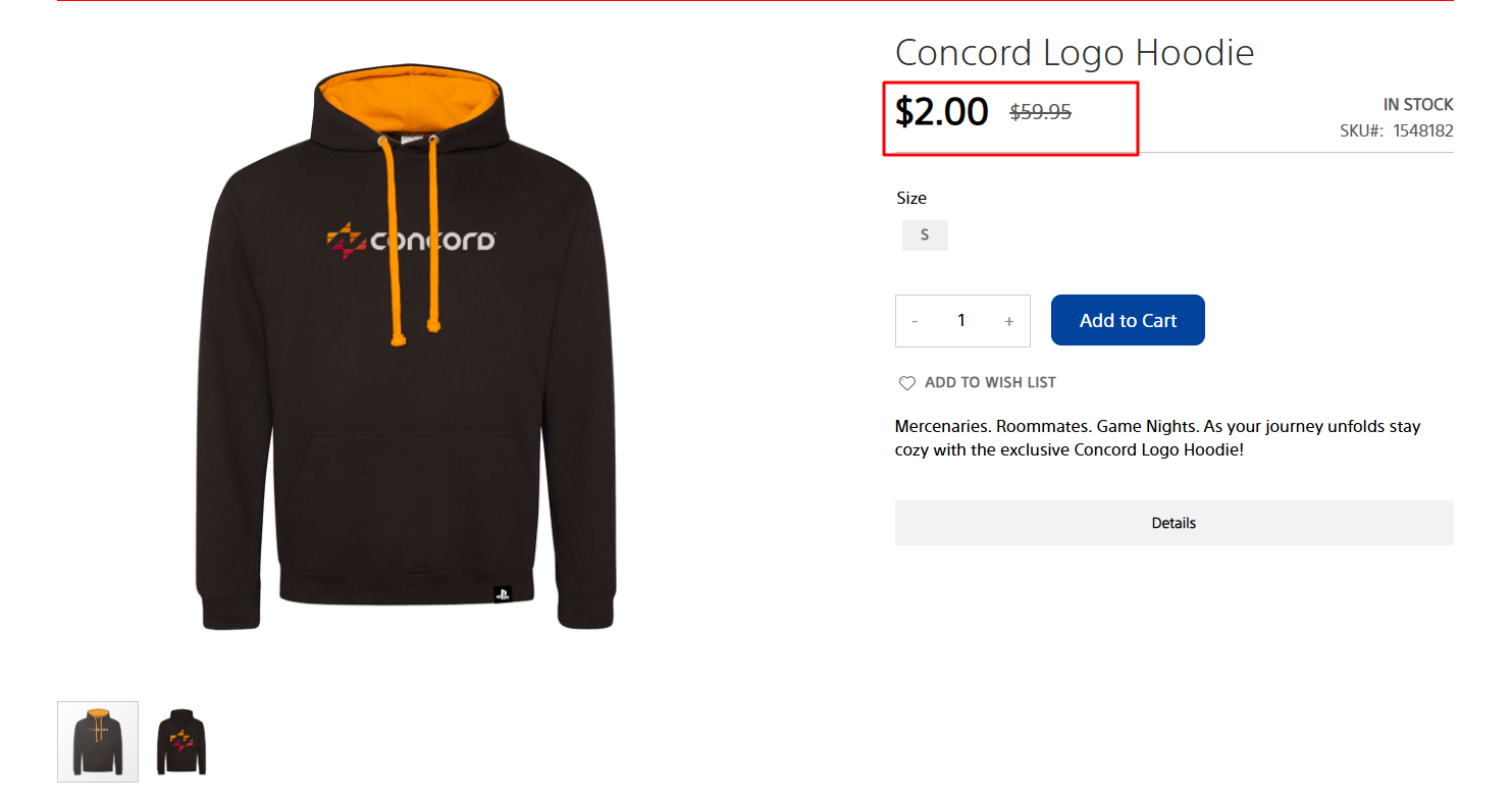 A semmiből előkerült néhány Concord kapucnis pulóver a hivatalos PlayStation áruházban, amiket jelenleg abszurdul alacsony, mindössze 2 dolláros áron árulnak, ami körülbelül 90-95%-os kedvezményt jelent az eredeti árhoz képest. Itt a bizonyíték, a pulcsi berakható a kosárba a PlayStation Shop oldalán. Az egyetlen rossz hír, hogy ha jól látom, Magyarországra közvetlenül nem szállítanak, de vanna európai országok, ahová igen. Akár szereted a Conrodot, akár nem, ez egy tök jó ajánlat.