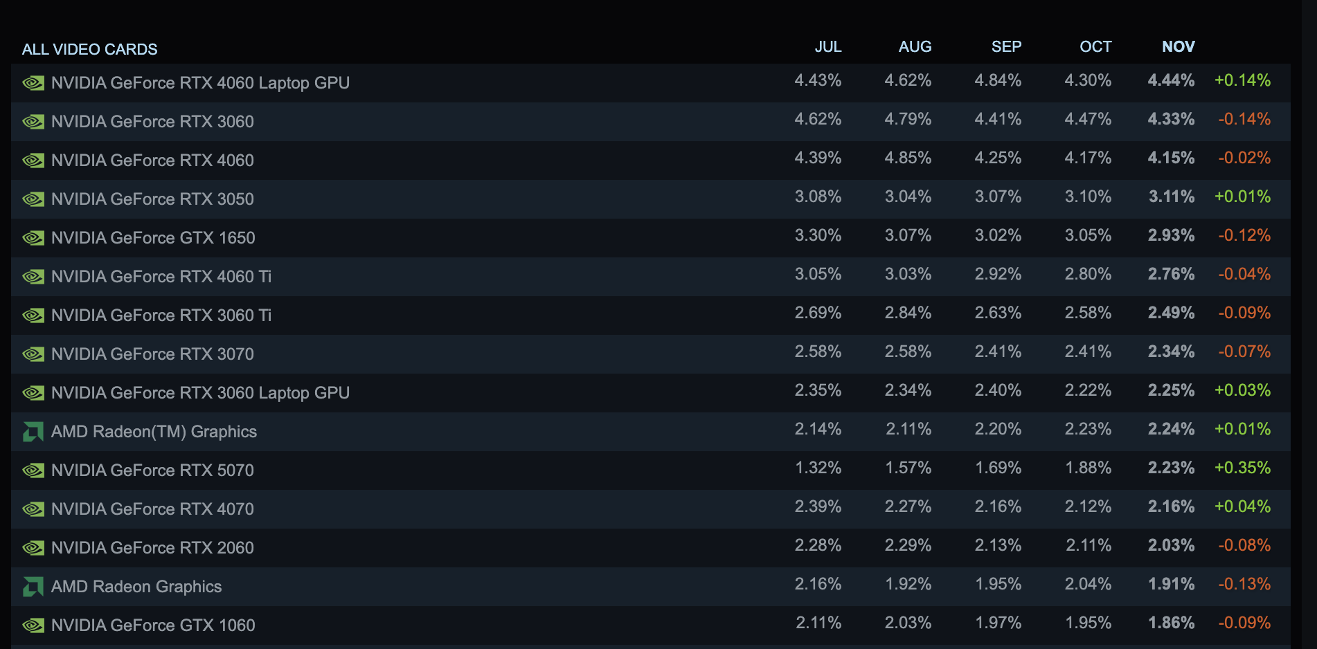 2025 őszére ismételten sikerült felzavarni a PC-s, hardveres piac állóvizét. A Windows 11 egyre jobban utat tör magának, ahogy bizony az új AMD és Nvidia újdonságokat is megtaláljuk a listák alján.
