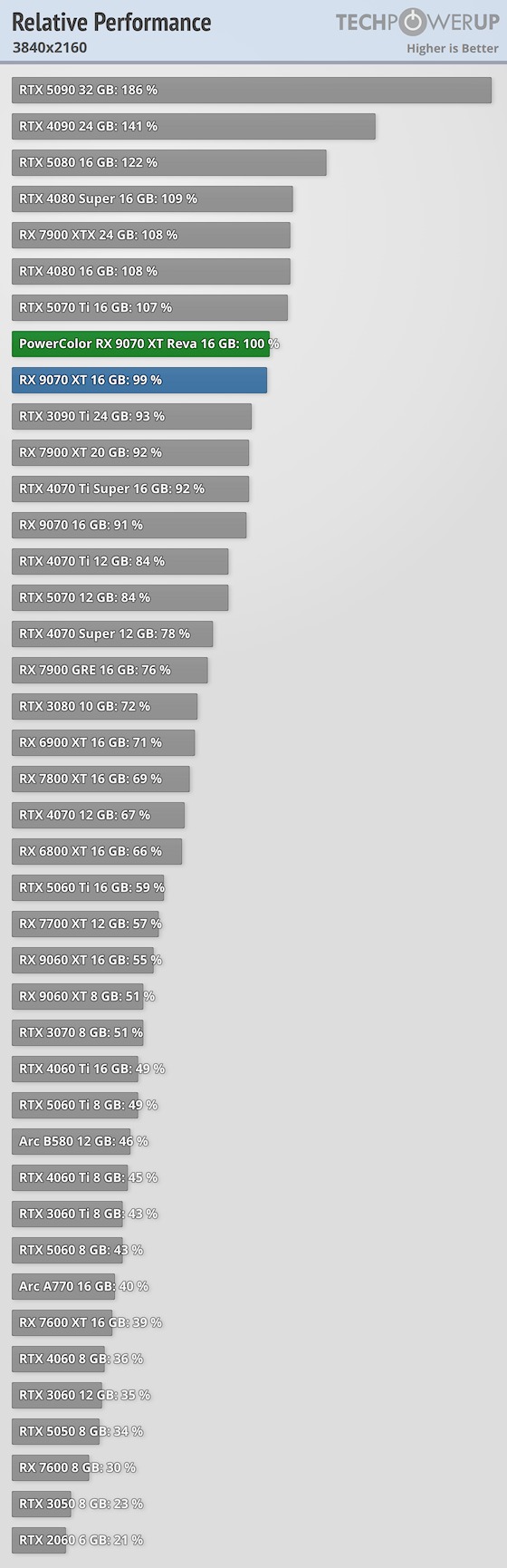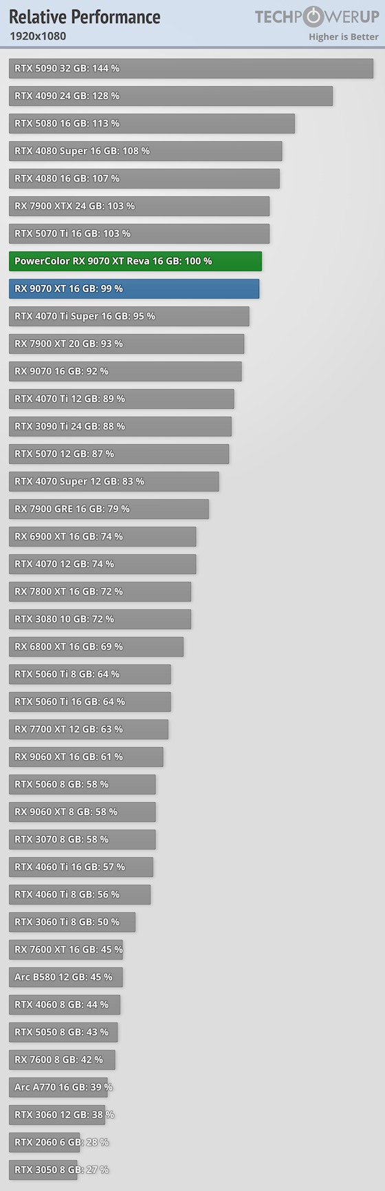 A fenti táblázatok a legfrissebb, PowerColor Radeon RX 9070 XT Reva TechPowerUP tesztből származnak.