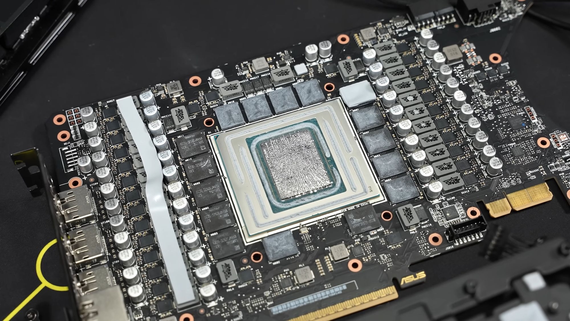 A fenti videó feltöltője, der8auer azonban hamar rájött. A korábbi verziókhoz képest sokkal tisztábbak, egyenletesebbek a videokártyára került paszták, thermal padok és folyékony fémek. Nagy eséllyel egy jóval fejlettebb, automatikus megoldás viszi fel ezeket a nyomtatott áramkörre. Úgy tűnik tehát, hogy az ASUS még tovább fejlesztette a gépsorát, miközben nem voltak megelégedve az eredeti modellekkel. A tesztek alapján sem a csatlakozónál, sem pedig a többi, érzékeny alkatrésznél nem melegedik a kártya, így remek munkát végeztek az ASUS mérnökei, még ha ki is kellett cserélni az első modelleket.
