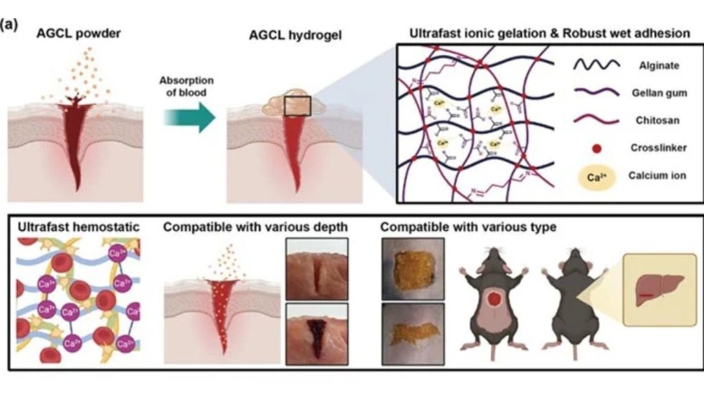 A hagyományos kötésekkel ellentétben a por nem szívja fel a vért, hanem aktívan lezárja a sebet. Biokompatibilis anyagokból készült, amik reagálnak a vérben található kalciumra, így a por körülbelül egy másodperc alatt géles réteggé alakul. A tesztelés során a por rendkívül nedvszívónak bizonyult, háromdimenziós szerkezetet alkot, aminek köszönhetően súlyának körülbelül 725%-át képes felszívni, ami hasznos a vérzés stabilizálásában, mielőtt a gél kialakulna.