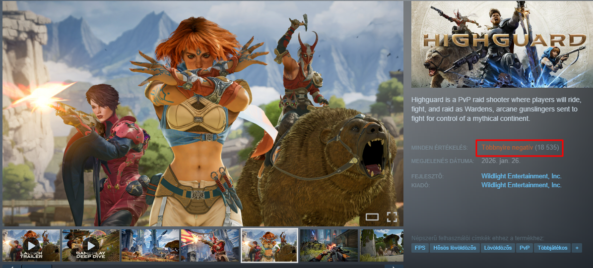 Még csak tegnap jelent meg ez az ingyenes raid shooter, de a Steamen máris negatív értékelésekkel bombázzák, aminek eredményeképpen a sokak által várt játék máris a ‘többnyire negatív’ értékelésű kategóriába zuhant. Alig néhány órával a szerverek elindulása után elérte ezt a státuszt. A címet egyébként nem is olyan rég, a 2025-ös The Game Awards-on mutatták be, ahol igen kiemelt helyen szerepelt, ami sok nézőnek nem igazán jött be, így hamar rengeteg negatív kommentet kapott. Ez folytatódott a megjelenés előtti hetekben is, sokan már úgy leírták, hogy sosem játszottak vele. Szóval nem meglepő, hogy néhány órával a játék megjelenése után elárasztják negatív értékelésekkel.