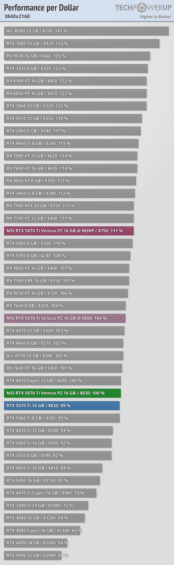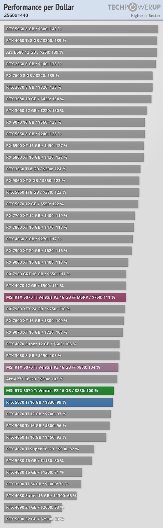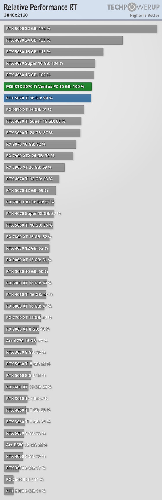 A fenti táblázatok a 2026. február 5-én legfrissebbnek számító, MSI GeForce RTX 5070 Ti Ventus 3X PZ TechPowerUP tesztből származnak.