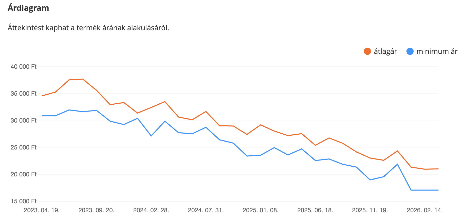 Razer Basilisk V3 X HyperSpeed bőven 40 ezer forint felett startolt, de még 2025-ben is a 30-25 ezer forintos ársávot képviselte. 2026 februárjában azonban végre hosszútávon is sikerült 20 ezer forint alatt maradnia, a legtöbb helyen már 17-18 ezer forintért el lehet csípni.