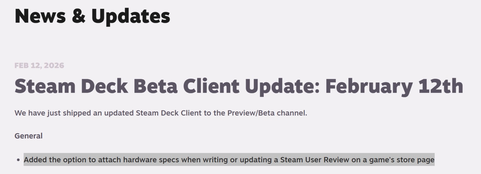 Mostantól a Steam felületén az értékelés mellé fel lehet vinni a PC vagy laptop, netán kézikonzol hardveres specifikációit. Ez elsőre nem tűnik nagy fejlesztésnek, ám ennek köszönhetően jóval könnyebben értelmezhető egy-egy „rosszul fut a játék” értékelés, hiszen látható, hogy milyen gépen tapasztalt elégtelen teljesítményt a játékos. Ha a Valve korábbi fejlesztési ütemtervéből indulunk ki, akkor február végén, március elején már minden felhasználó megkaphatja ezt a funkciót.