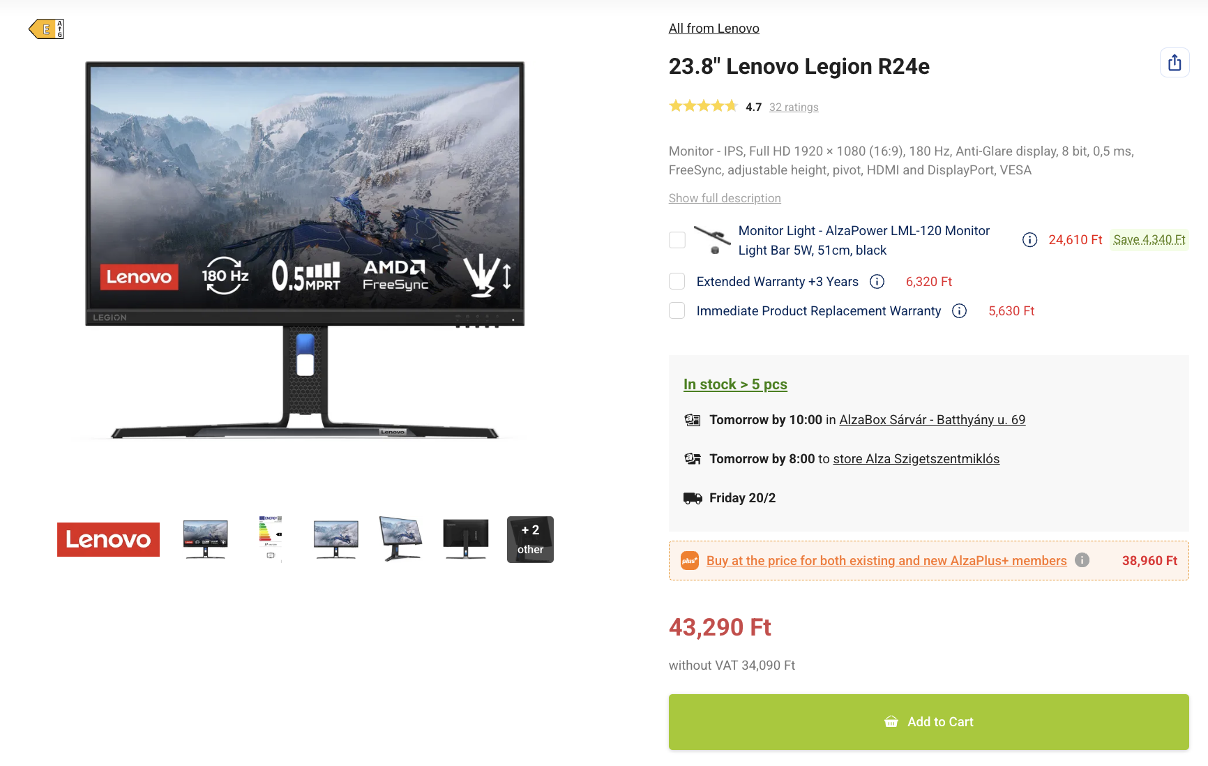 40 ezer forint alatt vihető vihető most a Lenovo gamer monitora