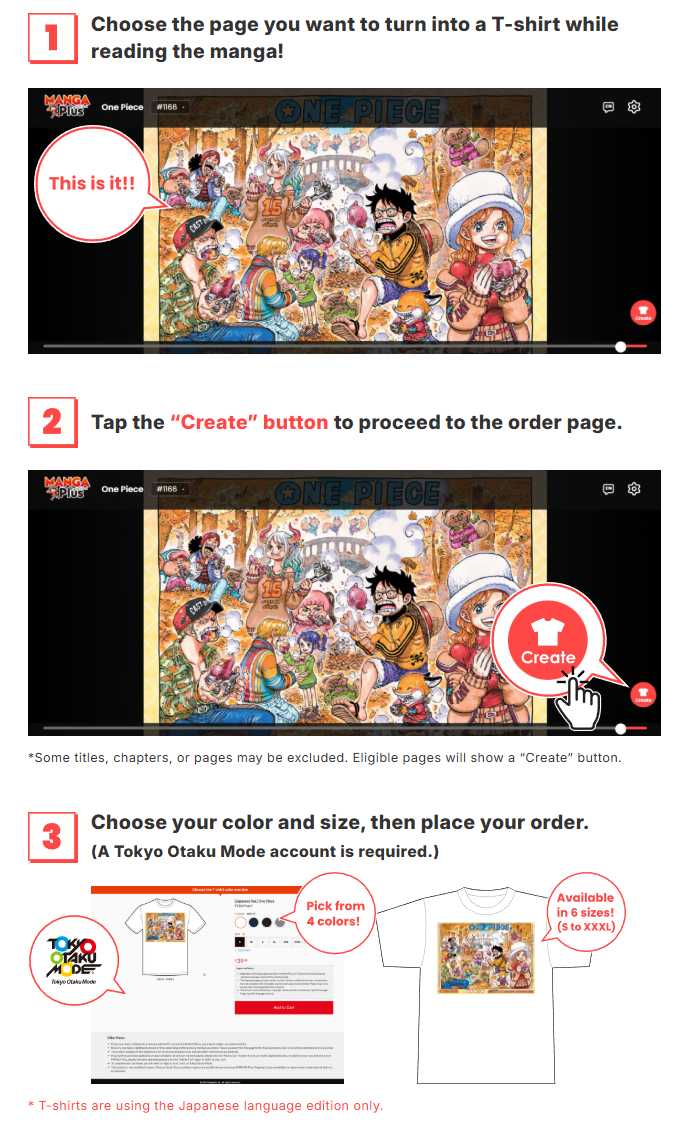 A Manga Plus most lehetőséget kínál a rajongóknak, hogy kiválasszák kedvenc manga oldalukat, és azt hivatalosan pólókra nyomtatják.
