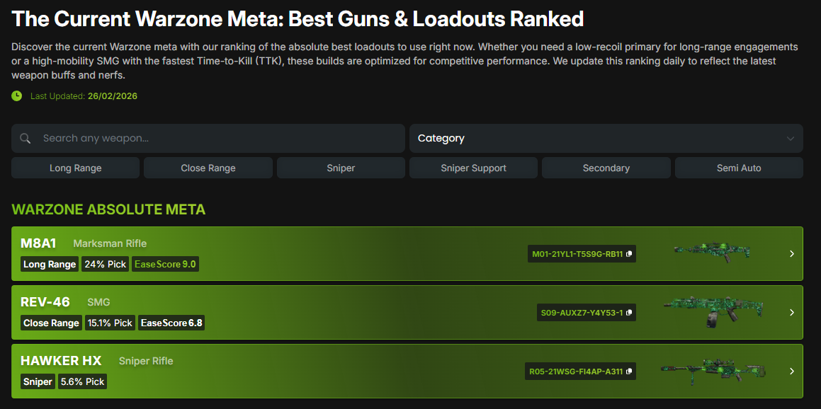 A Warzone fejlesztői már a december 4-én megérkezett integráció előtt kijelentették, hogy a meta ezúttal jóval gyakrabban változik majd, mint amihez korábban hozzászokhattak a játékosok. A jelek alapján bizony ezt sikerült is betartaniuk. A Season 1 alatt legalább 6-7 átrendeződést olvashattunk le, a korábbi érák szezononkénti 2, maximum 3 metaváltásához képest. Ez mindenképpen üdvözölendő, hiszen így jóval nehezebb ráunni a fegyverekre. Igen ám, de ez azt is magával hozza, hogy jóval gyakrabban kell figyelgetni a statisztikákat. Aggodalomra azonban semmi ok, segítünk ebben is!
