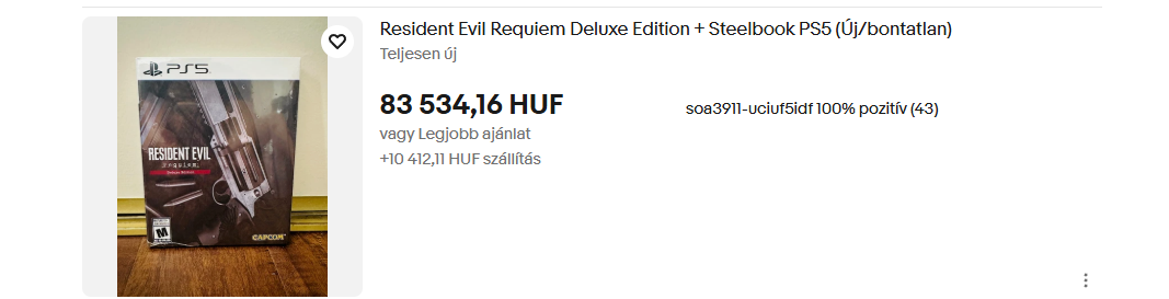 A hirdetések alapján több ilyen példány már el is fogyott. Fontos megjegyezni, hogy sok helyen ezek a fizikai példányok még elérhetők, sima bolti áron, vagy ha nem, akkor be tudják szeretni pár héten belül. Szóval semmi nem indokolja, hogy ezeket a példányokat ilyen áron kínálják. Az egyetlen terület, ahol a Resident Evil Requiem fizikai példányának beszerzése túl nehéznek bizonyulhat, az a Switch 2 exkluzív Generation Pack, amiben a Requiem mellett a 7-8 is ott van.