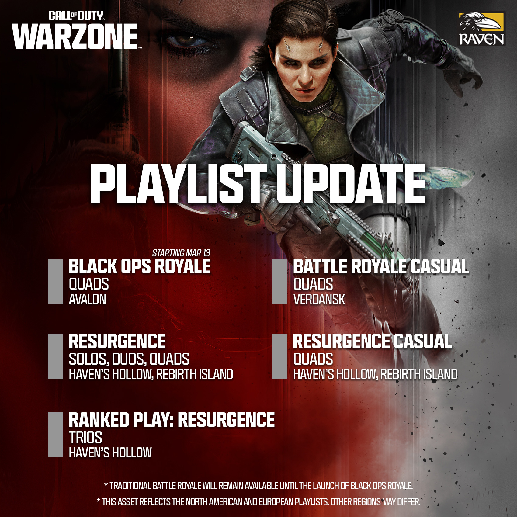 A Warzone fejlesztői kiemelték már decemberben, hogy a játékmódokat folyamatosan monitorozzák majd minden régióban. Ez bizony március közepére sem változott, bármikor kikerülhet egy-egy mód, ám, ha a helyzet megkívánja, akkor akár még bővülhet is a lenti lista.