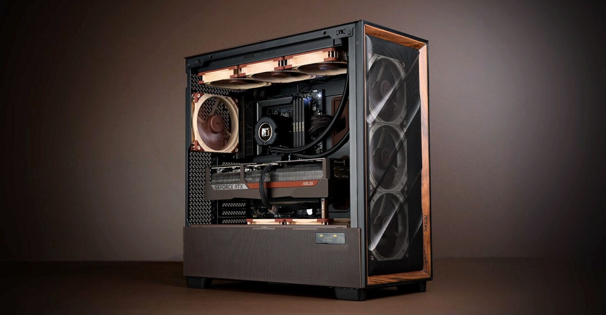 A gépházban egészen konkrétan az Noctua NF-A14x25 G2 és NF-A12x25 G2 ventilátorokkal találkozhatunk, melyek a cég legfrissebb fejlesztései. A cél természetesen a minél jobb levegőáramlás volt, miközben a zajszintet is sikerült lejjebb tornászni. A cég saját mérései szerint az alap, Flux Pro házhoz képest 8 decibellel volt halkabb a Noctua változat, miközben a hőmérsékletek hasonlóan alakultak. Ennek azonban komoly ára is van. Az első időszakban 400 eurót kér el majd érte a gyártó, mely közel 160 ezer forintos árcédulát takar.