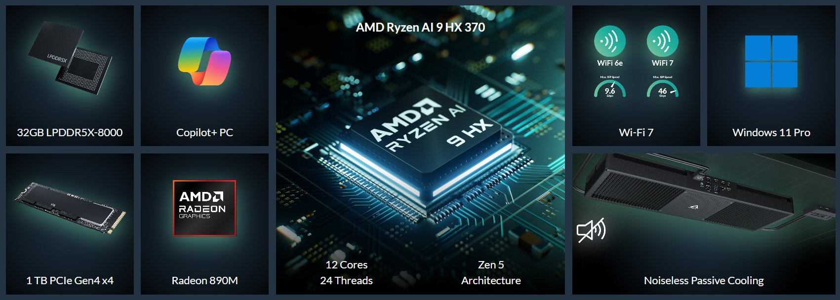 • CPU: AMD Ryzen AI 9 HX 370 – 12 mag, 24 szál