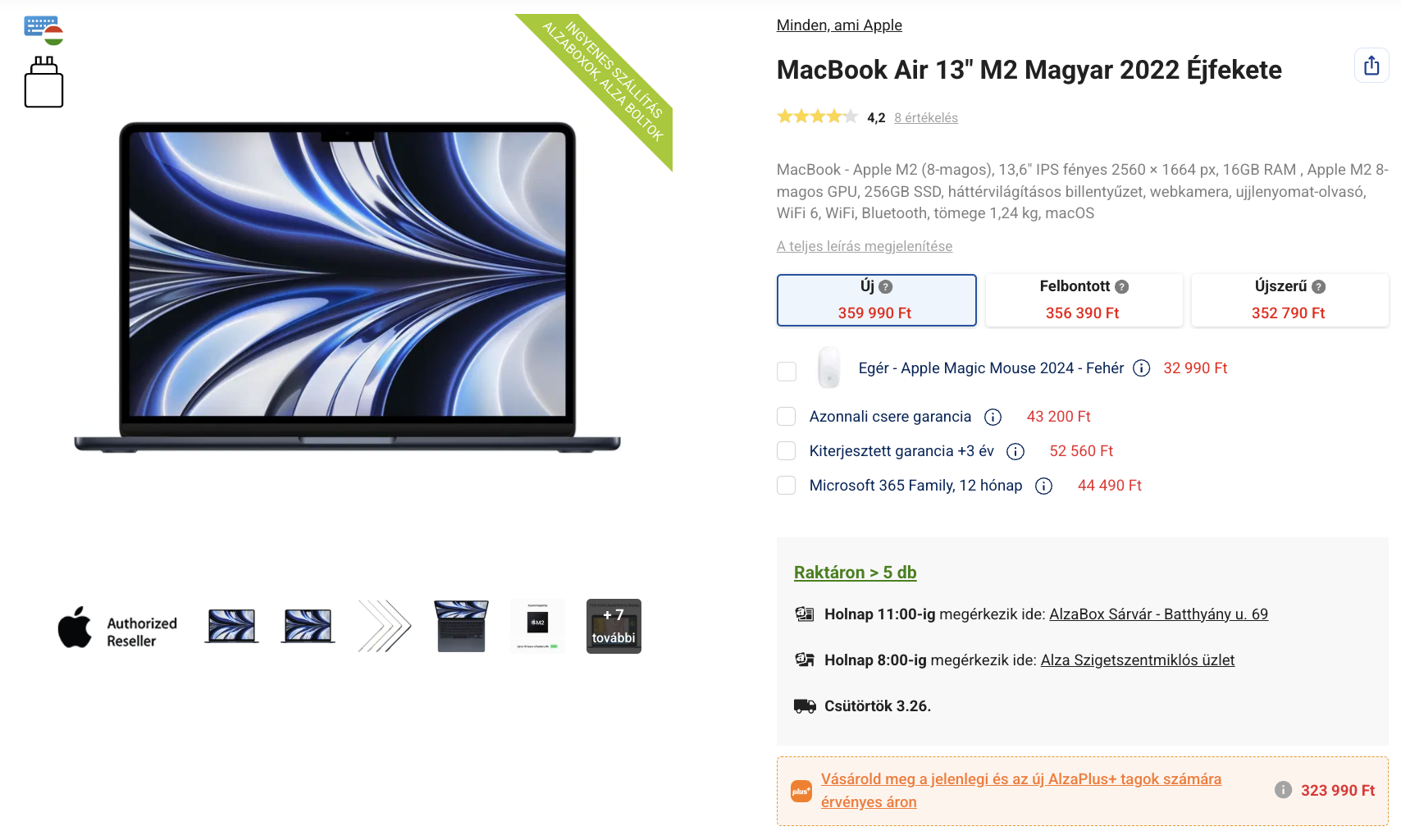 Az Alza most 324 ezer forintért adja a MacBook Air M2-t, egy 500 forintos AlzaPlus előfizetés szükséges csak ehhez az árhoz.
