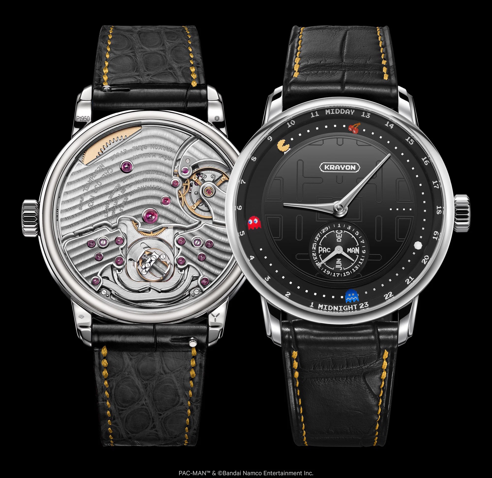 A különleges karóra lelke a Krayon saját fejlesztésű, több mint 400 alkatrészből álló mechanikus szerkezete, ami képes a viselő pontos földrajzi helyzete alapján meghatározni és kijelezni a napkelte és napnyugta időpontját. Ebben a limitált kiadásban azonban a csillagászati szimbólumokat a játék elemei váltják fel: a számlapon maga Pac-Man falja a pöttyöket az idő múlásával, a nappal és az éjszaka váltakozását jelezve.