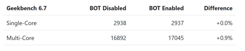 - A Geekbench szerint az Intel által használt, fentebb is említett BOT (Binary Optimization Tool) nevű eszköz átírja/optimalizálja a benchmark kódját futás közben.
