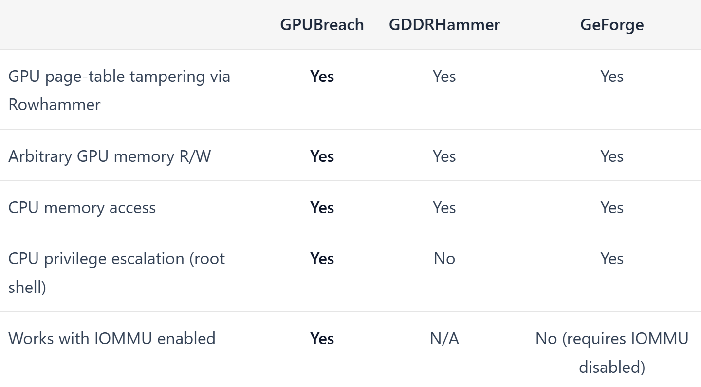 A Rowhammer-típusú támadások nem új keletűek, de az elmúlt időszakban a kutatók figyelme egyre inkább a GPU-k felé fordult. Az első két projekt, a GDDRHammer és a GeForge már megmutatta, hogy az NVIDIA GDDR6 memóriával szerelt videokártyái remek jelöltök erre a fajta memória-manipulációs technikára, feltörésre. Most azonban egy harmadik, lényegesen kifinomultabb támadás is napvilágot látott: a GPUBreach névre hallgató kutatás egyenesen a Torontói Egyetem munkatársaitól származik és egy fontos határt lép át az előző kettőhöz képest, hiszen az IOMMU védelmet is megkerüli.