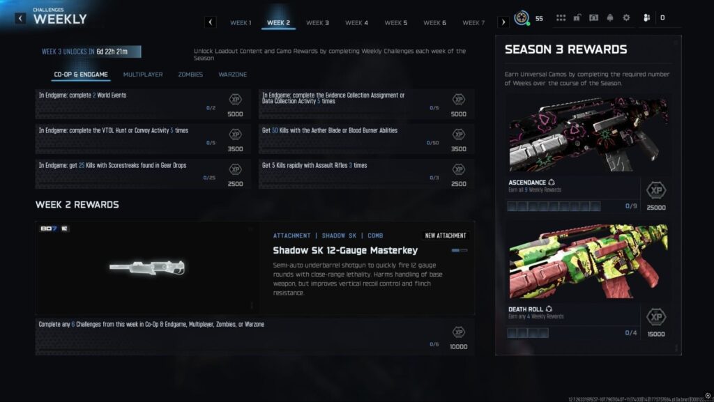Minden héten új küldetésekre és tárgyakra számíthatunk, ezúttal pedig a Season 3 második heti jutalmának megszerzése a tét. A második héten a Shadow SK 12 Gauge Masterkey a jutalom. Ez egy comb attachment a Shadow SK sniper puskához, amellyel a fegyver félautomata sörétessel egészül ki, melynek köszönhetően gyors, 12-es sörétlövések leadására képes, ami szorult helyzetekben közelharci megoldást nyújthat egy egyébként nagy hatótávolságú fegyverrel.
