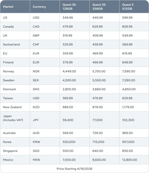 - a Meta Quest 3S 256 GB-os modellje 400 dollárról 450 dollárra